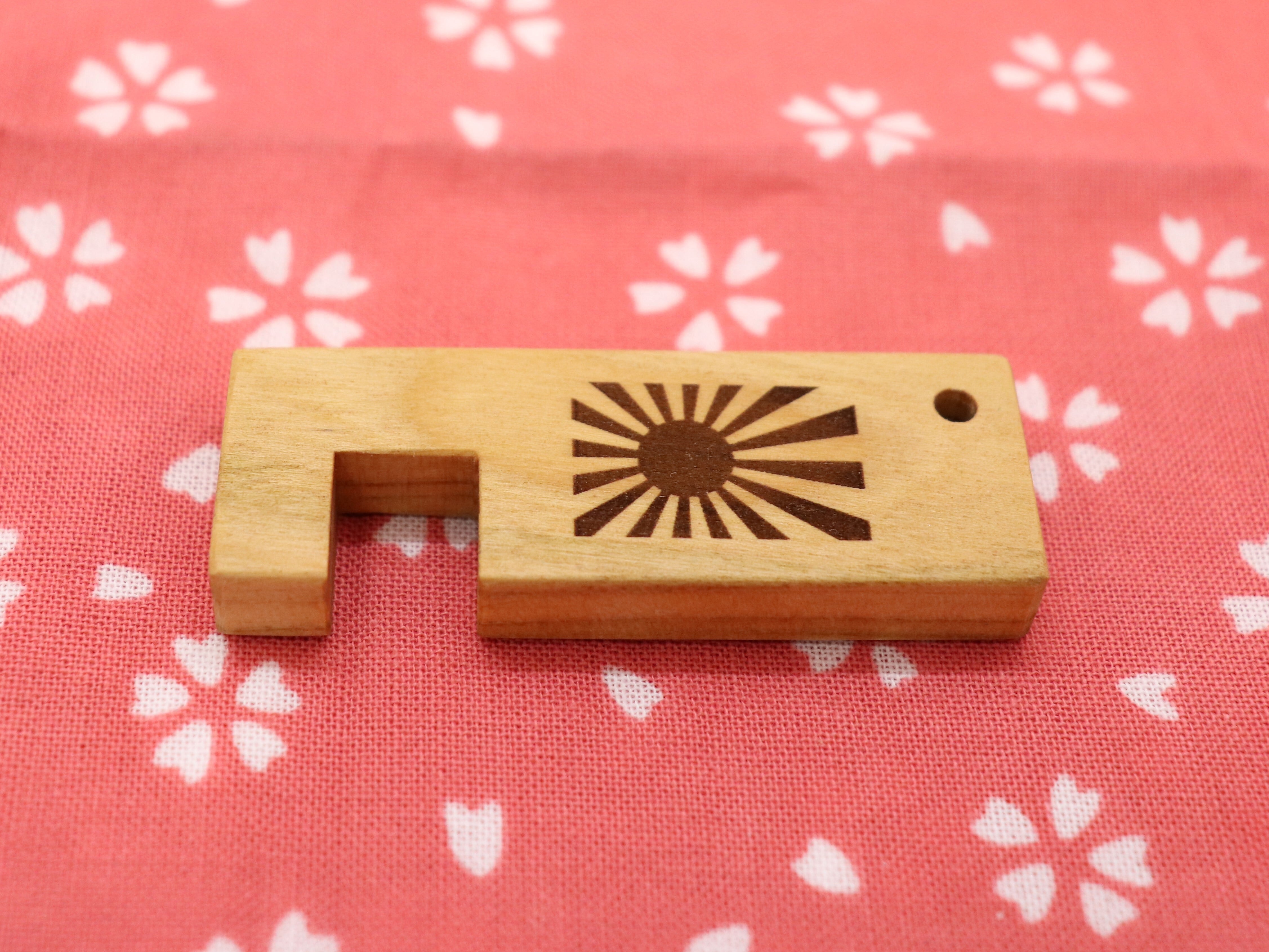 ・山桜で作ったキーホルダー型スマホスタンド<旭日旗>