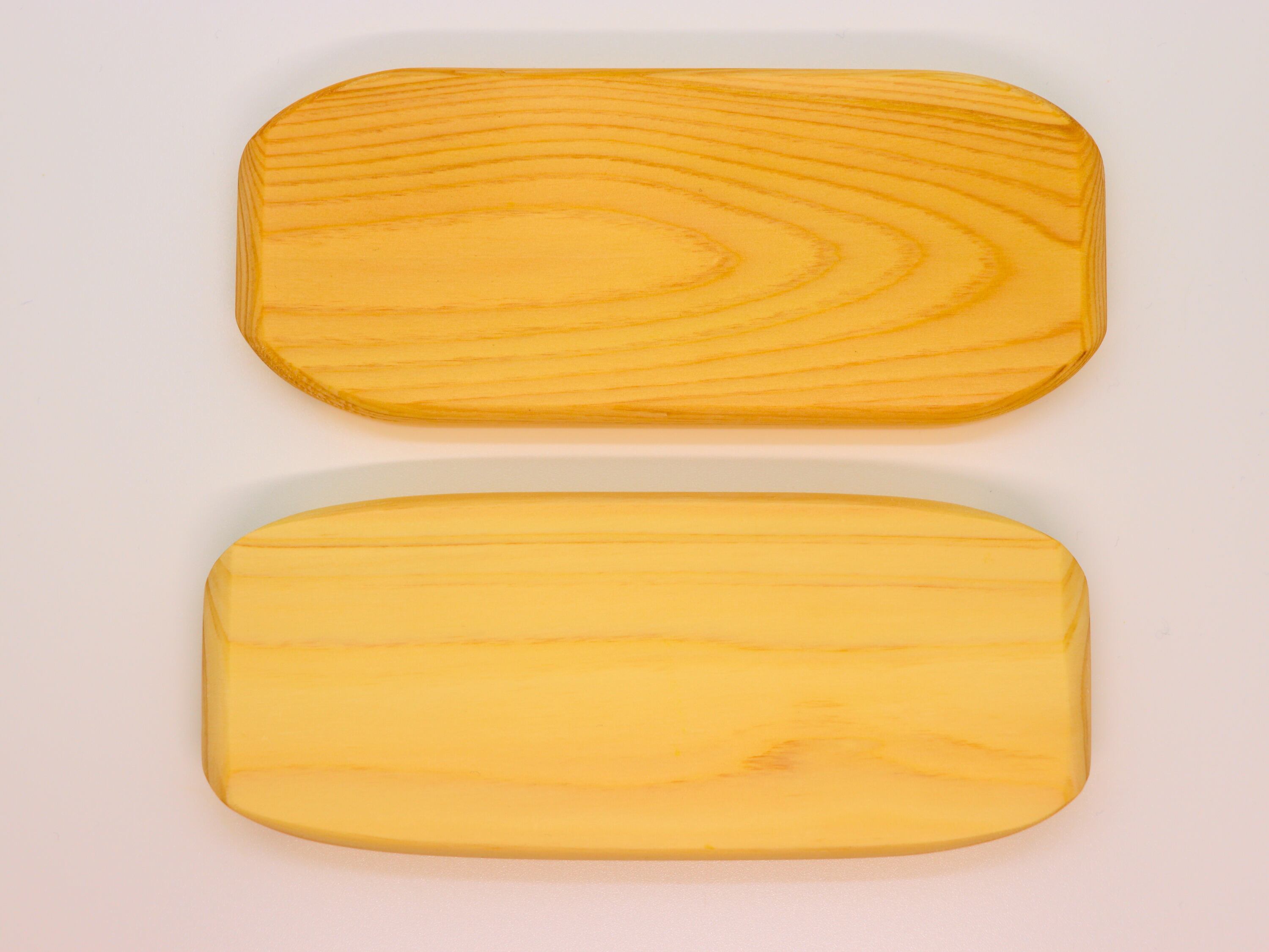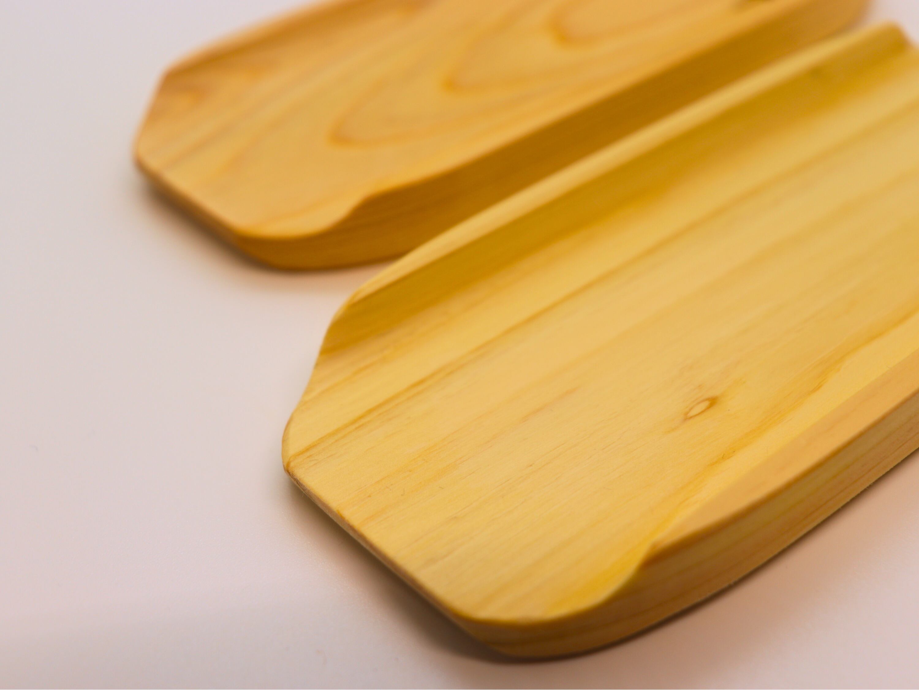 素材には、木目が美しく香りの良いヒノキを使用。天然木ならではのぬくもりや、ふわっと広がる清々しい香りも魅力です。ひとつひとつ木目が異なるため、それぞれが世界にひとつだけの表情を持つのも天然素材ならでは。仕上げには食品用の「アマニ油」を使用しており、安心して長くお使いいただけます。