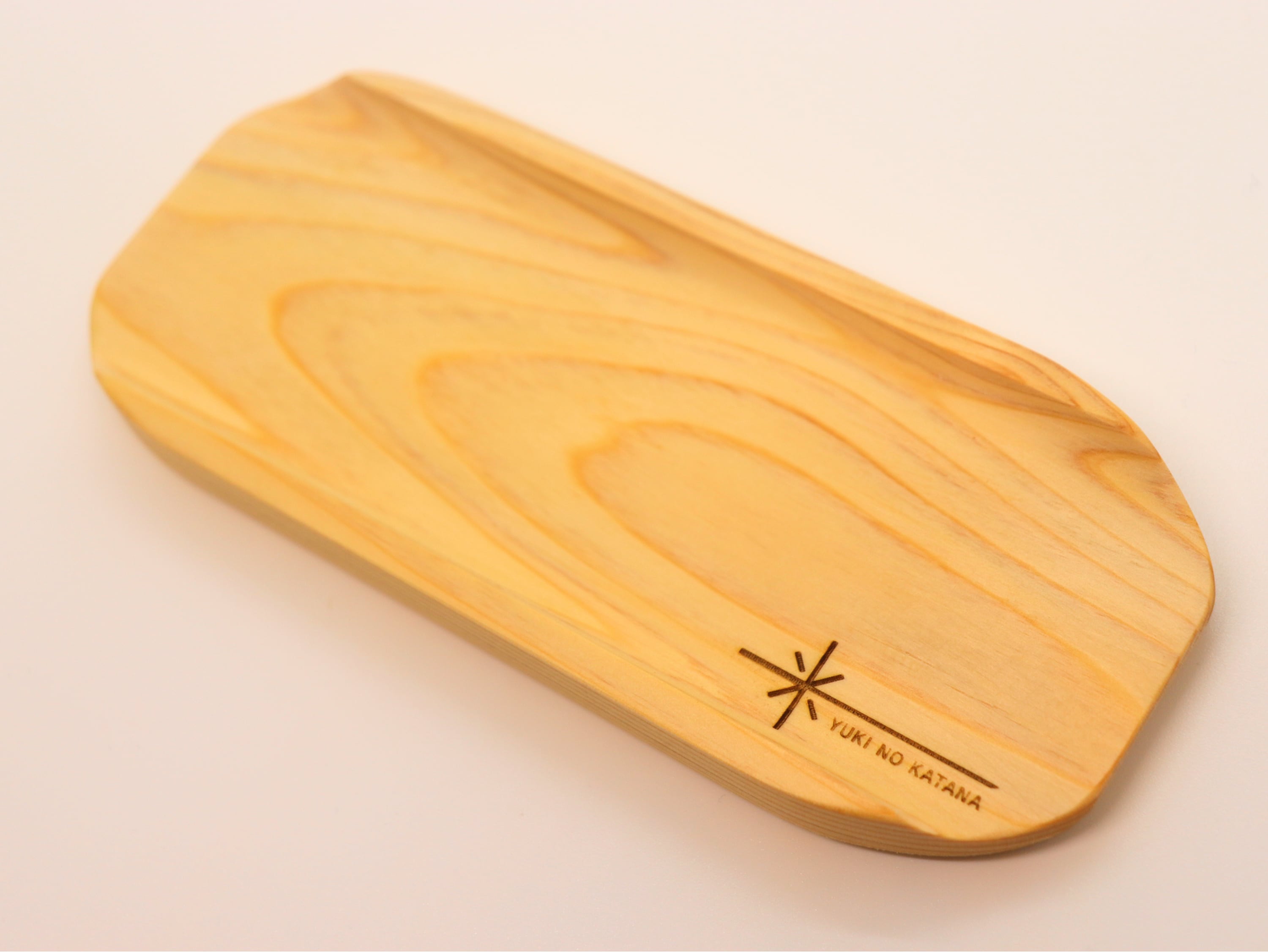 職人が手仕事で仕上げた、ヒノキ香るオリジナルトレイに「YUKINOKATANA」ロゴを刻印!