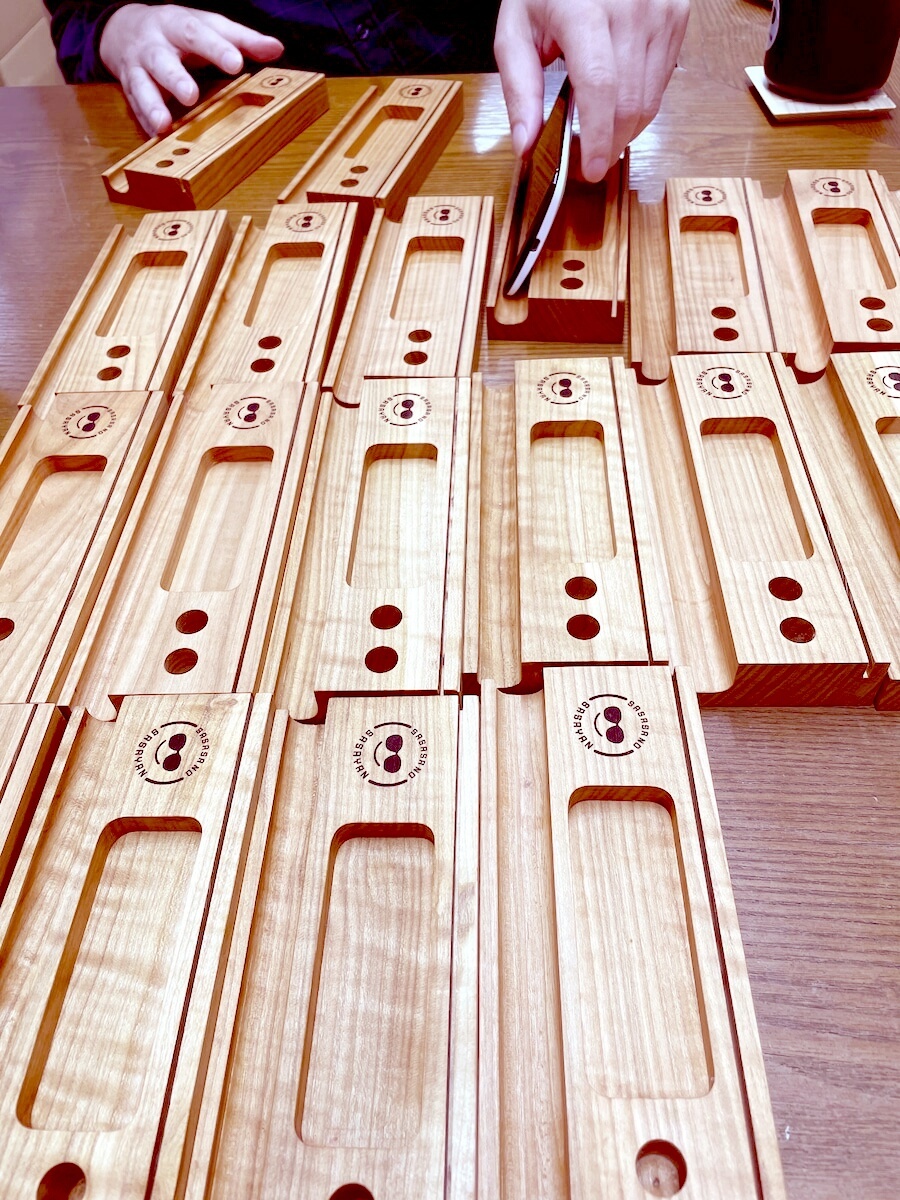 オリジナルロゴは、新しく導入したレーザー彫刻機で刻印しました。
